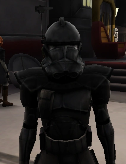 Cards had the same armor as all ARC troopers, but it was colored dark grey. He wore the Phase II version and had extra armor, a pauldron, an extra ammo pouch, a kama, a rangefinder, and a heads-up display.