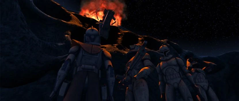 While Echo and Rex were prepping liquid tibanna for the bomb, Hevy, Fives and Cody were holding off the droids. The remote activator to detonate the tibanna did not function properly, so Hevy stayed behind to fix it. It would not work and Hevy realized that he had to do it manually. Before the other clones could do anything, Hevy attacked the droids. When Hevy ran out of ammunition, he was shot and lay injured in front of the tibanna. Hevy blew up the base, with himself and the droids inside. The Republic quickly arrived and the survivors were picked up by a gunship.