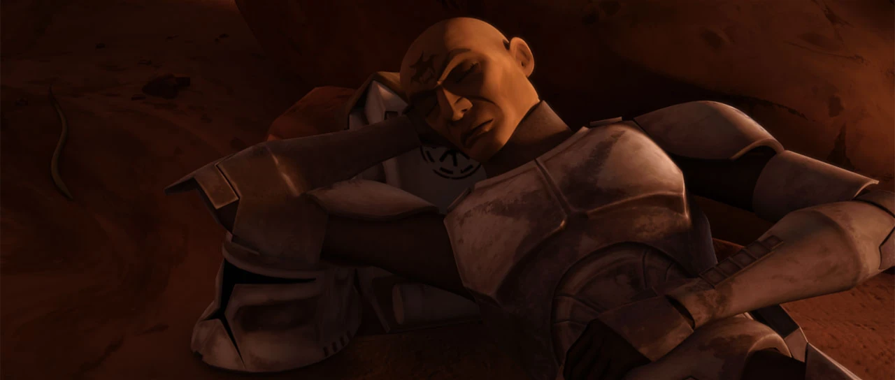 After the droid factory on Geonosis was destroyed, Scythe, Tango Company, and Jedi Padawans Ahsoka Tano and Barriss Offee, were ordered to pick up medical supplies from a medical station above Ord Cestus. While sleeping on the ground near the Progate Temple, Scythe was infected by Geonosian brain worms. His lieutenant, Trap, woke up the sleeping troopers and they left the planet in a medical frigate. On board, Scythe infected the other clones, as the brain worm had taken over his mind. Scythe took command of the infected clones, and, with troopers Ox and Edge, he killed the pilots and took control of the bridge. Later, he order Edge and Ox to attacked the Jedi Padawans, but it failed. Near the medical station, Ahsoka killed the worms by freezing them which freed the clones from the brain worm. All except Trap survived, as Barriss Offee impaled him.